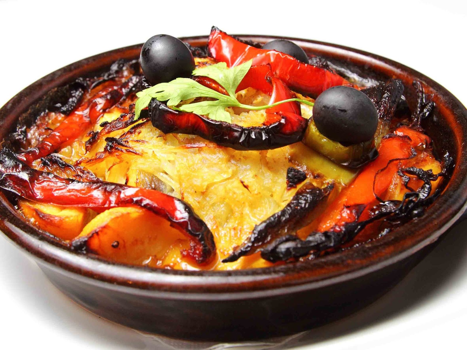 Musaka de berenjena y cordero con espuma caliente de patata y yogur.