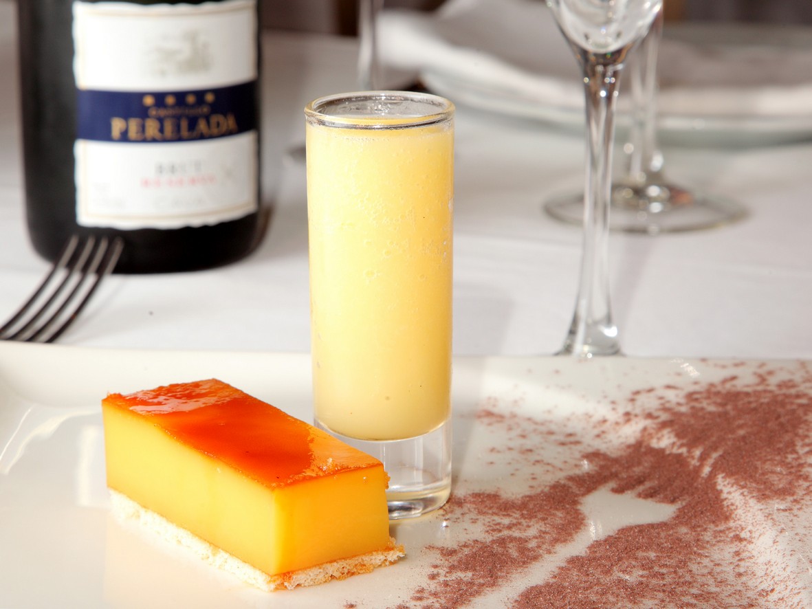 Cava Castillo Perelada Brut Reserva (Este menú también podrá ser degustado con vino tinto Heredad Garnacha, DOP Campo de Borja o con vino blanco Solo Tiólico 2012 DOP Campo de Borja).