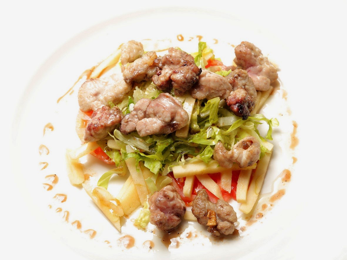 Ensalada de secreto de blanco de Teruel con vinagreta de manzana.