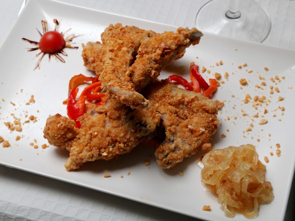 Chuleticas de Ternasco de Aragón IGP almendradas y cebolla confitada.