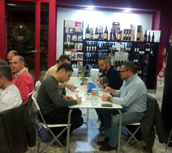 Practica de cata de cinco vinos: blanco jóven, blanco barrica, rosado, tinto, tinto crianza.