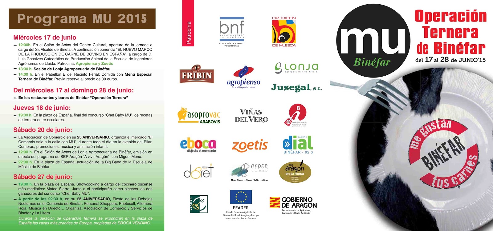 Hasta el domingo, 21, en Binéfar, Mu, operación ternera. Menús con entrecot a 15 euros; menús especiales a 25; y pinchos, raicones, pepitos y hamburguesas, a 4,50 euros, con bebida.