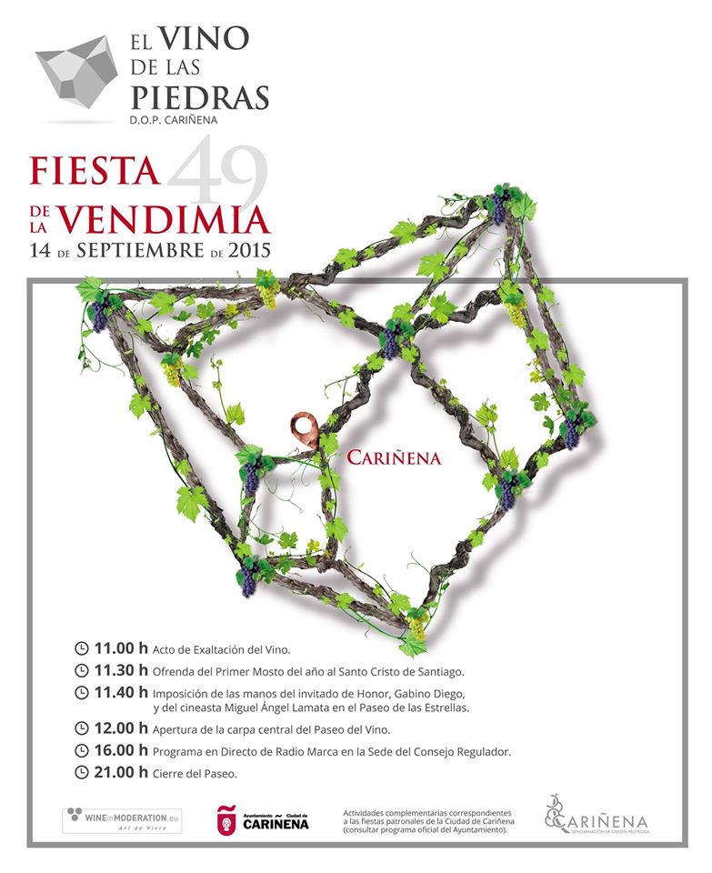 La Fiesta de la Vendimia se celebrará en el Paseo del Vino, donde se instalará la Carpa Central de la Denominación. Desde las doce de la mañana, los visitantes podrán disfrutar de una gran selección de los Vinos de las Piedras, maridados con excelentes tapas aragonesas. Este año la Carpa contará con la presencia de una delegación de Saint Pierre d’ Oleron, localidad francesa hermanada con Cariñena. Los visitantes podrán degustar una selección de sus célebres ostras acompañadas de un buen vino. La fiesta continuará en el Museo del Vino, que de 16 a 19 horas acogerá un programa radiofónico en directo de la emisora Radio Marca.