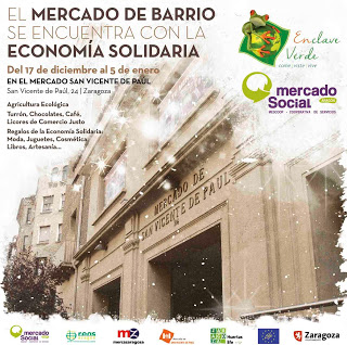 En el Mercado de san Vicente de Paúl −San Vicente de Paúl, 22. Zaragoza−, hasta el 5 de enero, segunda edición del programa Enclave verde. Agricultura ecológica y de la huerta, café, turrones o licores de comercio justo y carnes o pescados en puestos tradicionales son algunos de los productos que podrán comprar todos aquellos que se acerquen hasta este mercado que fue reformado hace unos años.