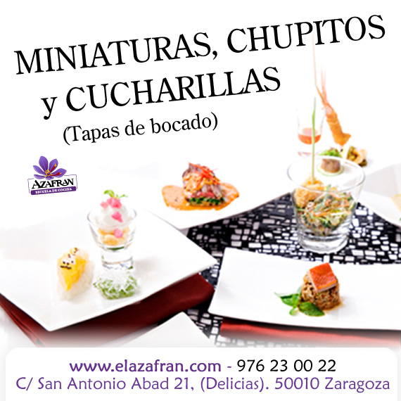 Curso de cocina de miniaturas, chupitos y cucharillas en la Escuela de cocina Azafrán –San Antonio Abad, 21. Zaragoza. 976 230 022−. De martes a jueves, 23 al 25 de febrero, de 20.15 a 22.15 horas, por 60 euros.