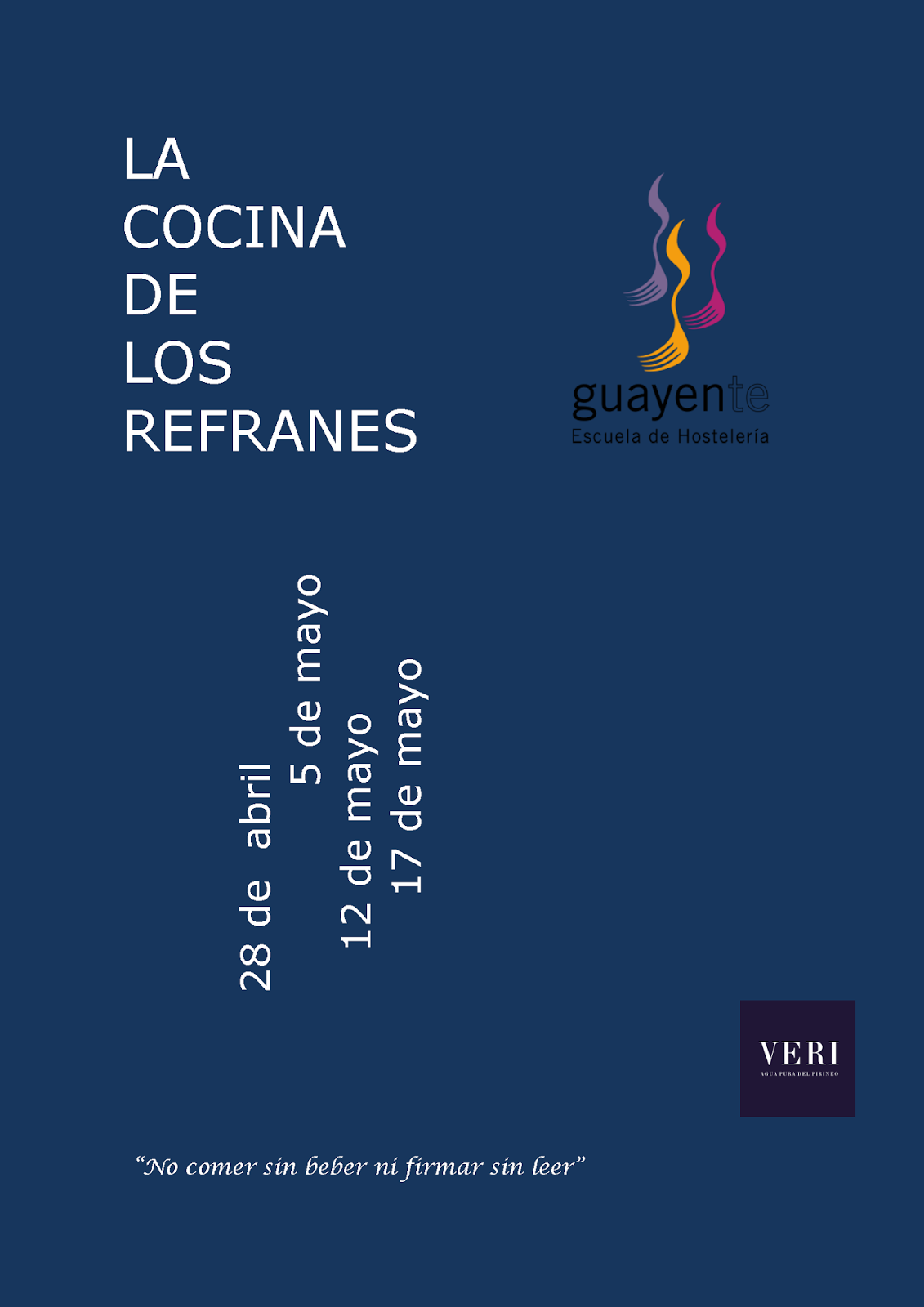 En la Escuela de Hostelería Ntra. Sra. de Guayente −Santuario, s/n. Sahún. 974 551 327− ciclo Guayente a la carta, los jueves 28 de abril, 5, 12 de mayo, y el martes, 19 de mayo, con menús agrupados bajo el epígrafe La cocina de los refranes.