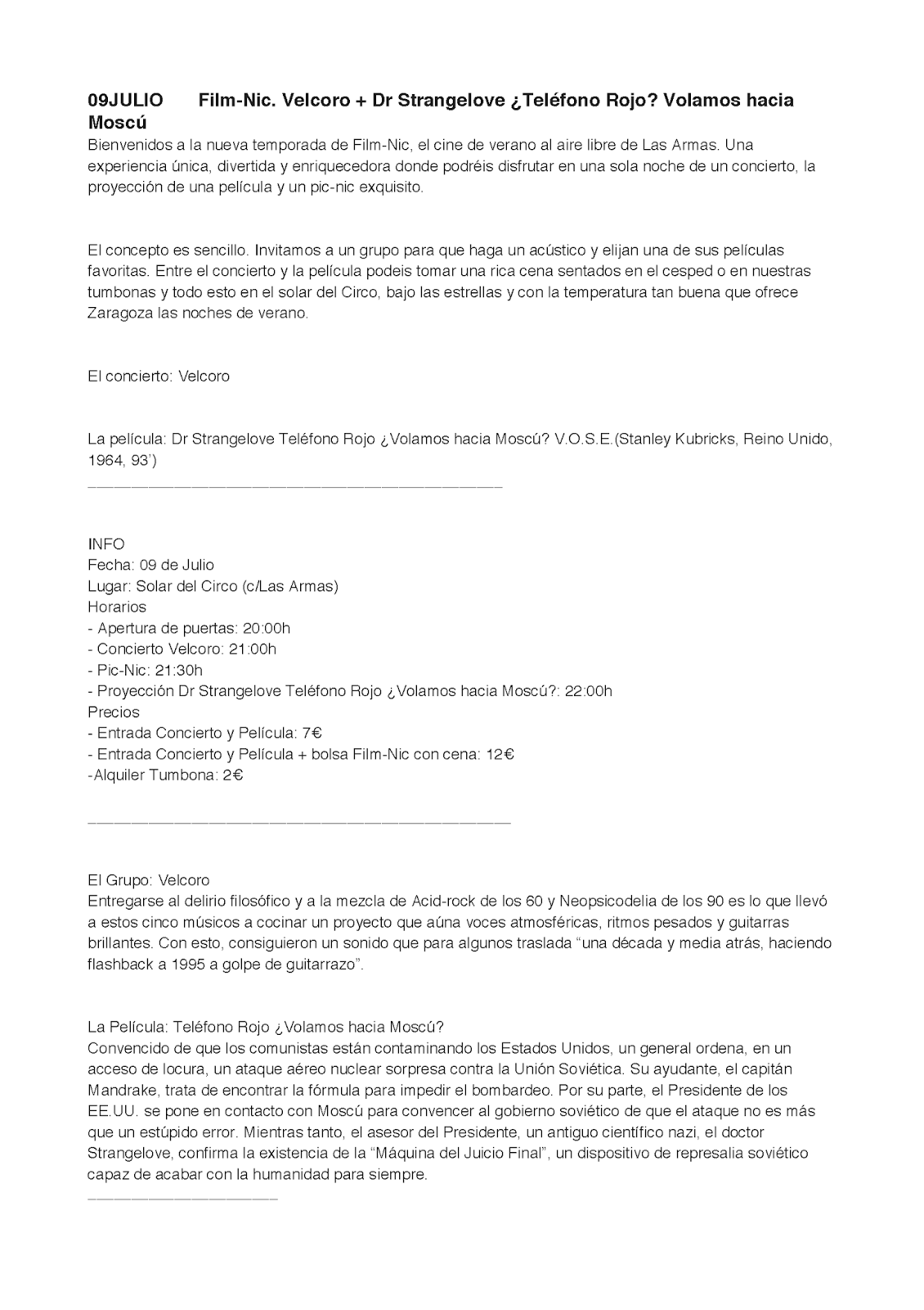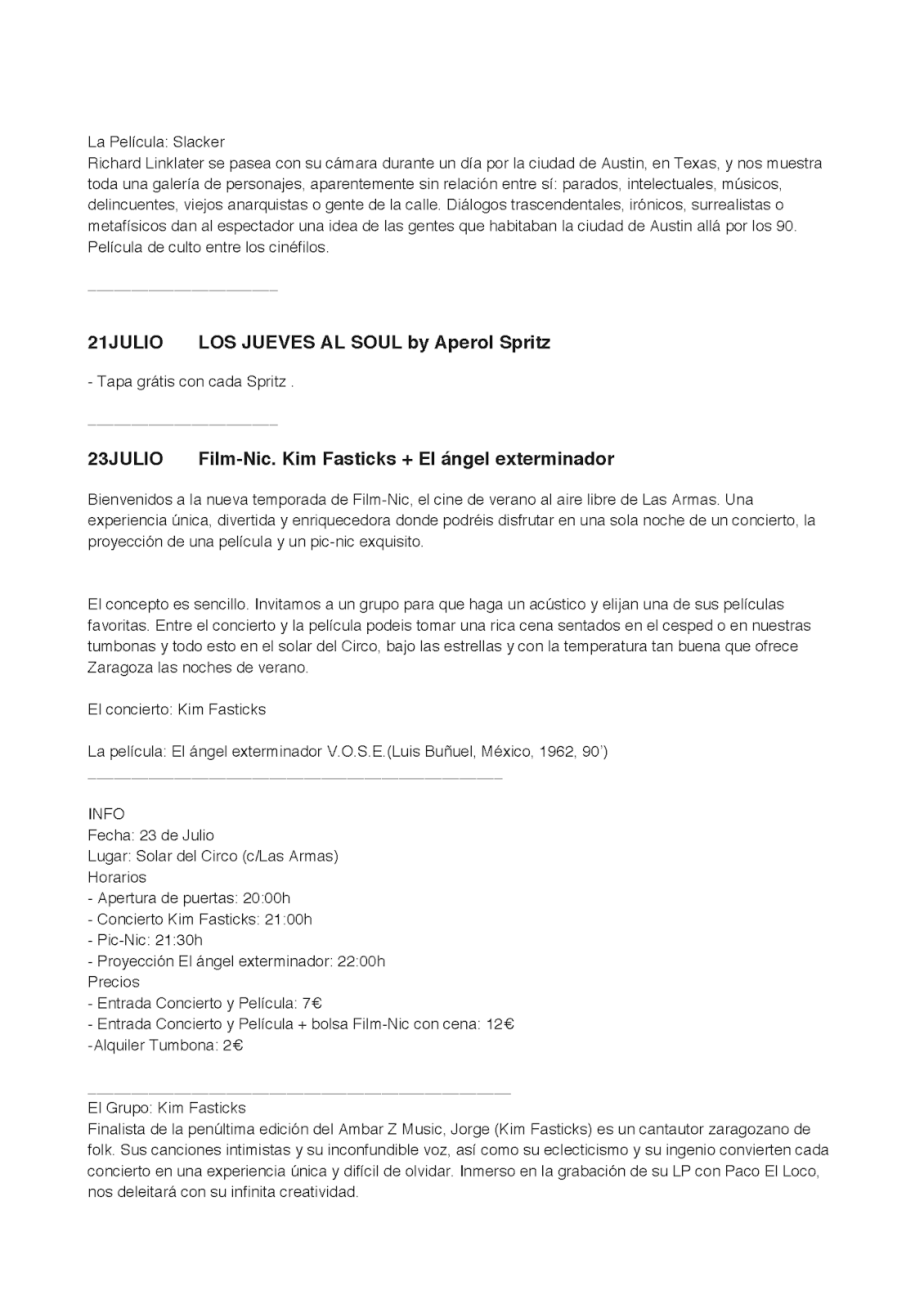 “Una experiencia única, divertida y enriquecedora donde podréis disfrutar en una sola noche de un concierto, la proyección de una película y un pic-nic exquisito”.