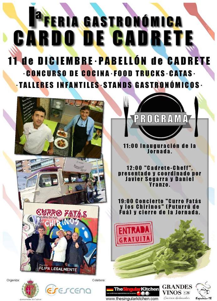 A las 12 horas, Cadrete-Cheff, un concurso al estilo de los realities televisivos en el que se verán las caras ocho “aspirantes” para ganar el “Cardo de Oro”. La meta: lograr el mejor plato con el famoso cardo cadretano como producto principal. Presentado y coordinado por Javier Segarra y Daniel Yranzo.