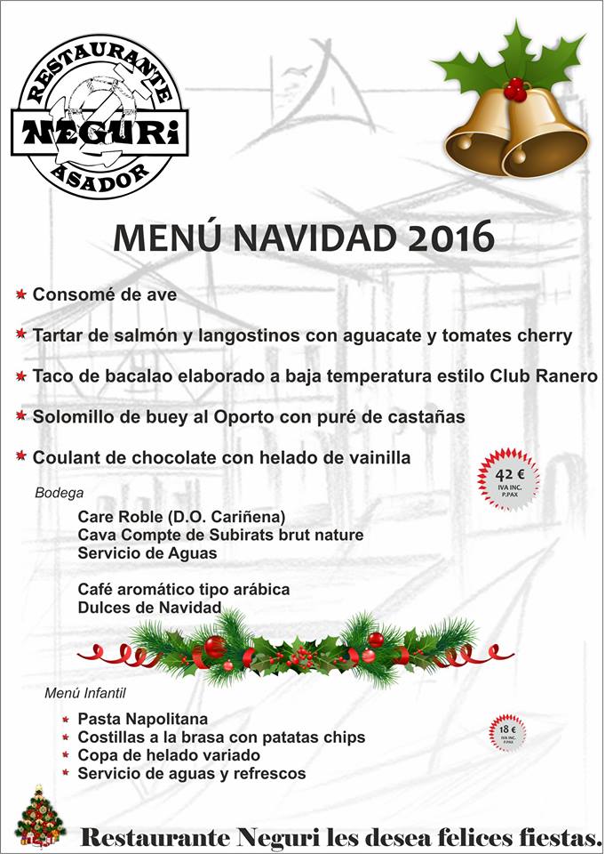 Menú especial del Día de Navidad en Neguri (25 diciembre)