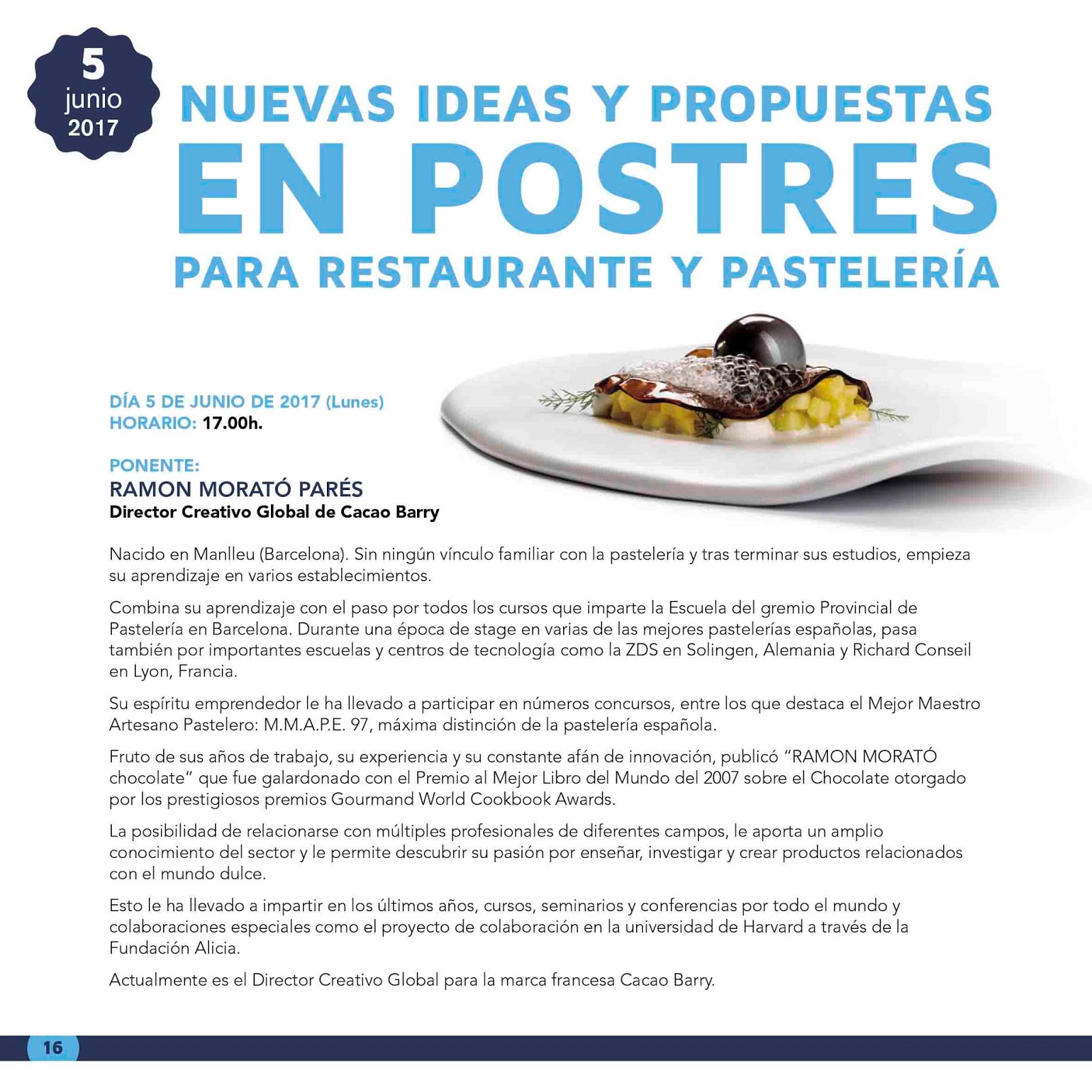 “Durante la jornada conoceremos el desarrollo paso a paso de diferentes postres para restaurante y pastelería, así como las últimas novedades en chocolatería”.