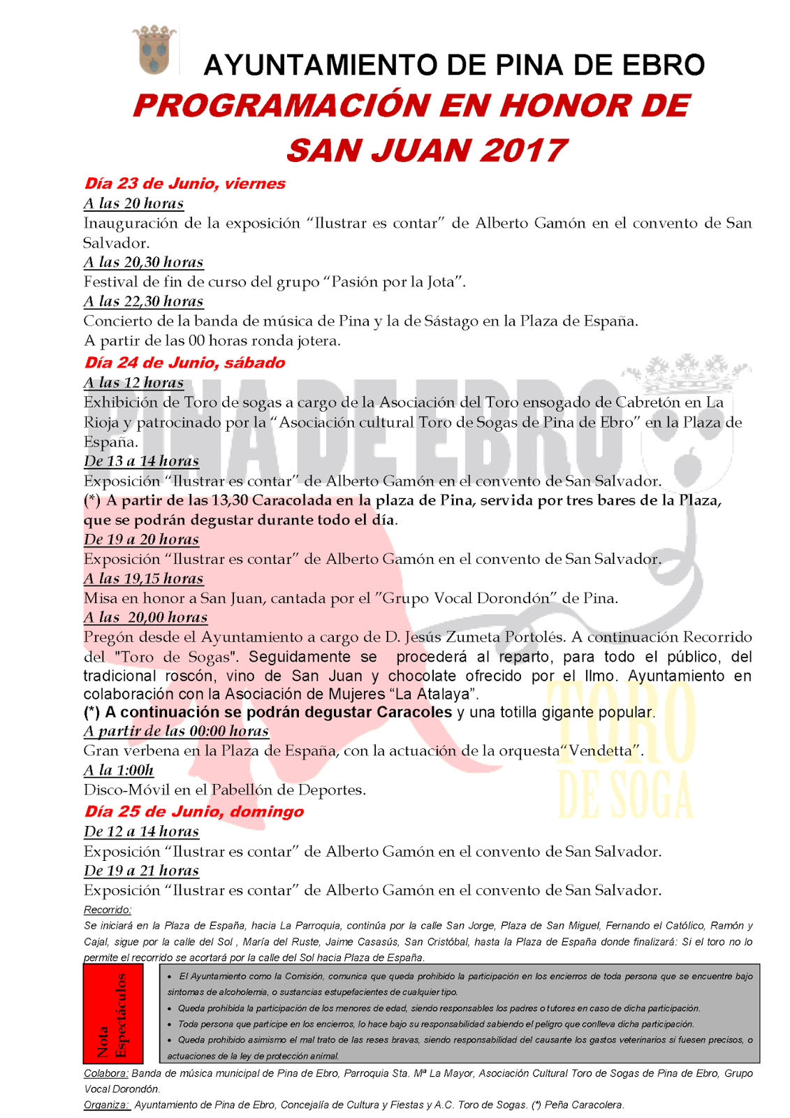 El sábado, 24, a partir de las 13.30 horas, Caracolada en la plaza de Pina de Ebro, servida por tres bares de la Plaza, que se podrán degustar durante todo el día.