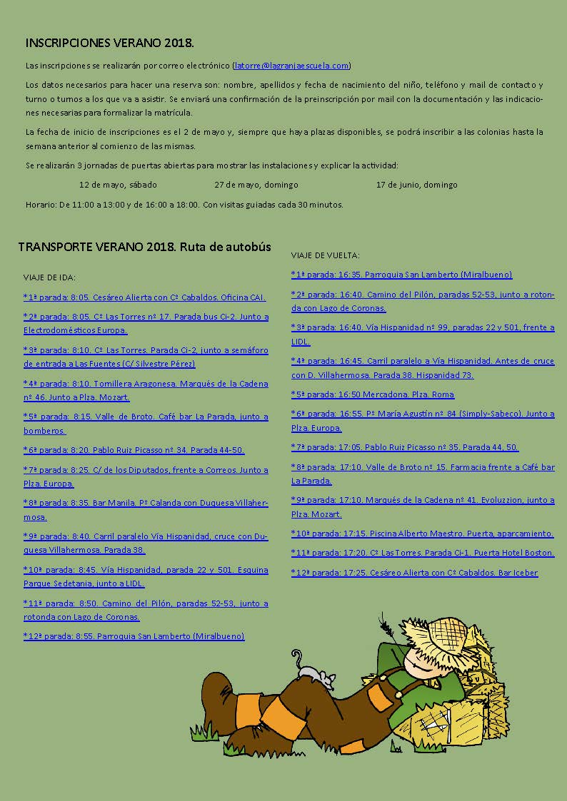 La Granja Escuela La Torre –Camino de la Marina, 25, Zaragoza. 976 344 097- ofrece del 3 al 7 de septiembre sus colonias de verano para niños entre 3 y 13 años. La actividades se realizarán entre semana de 09 a 16.30 horas.