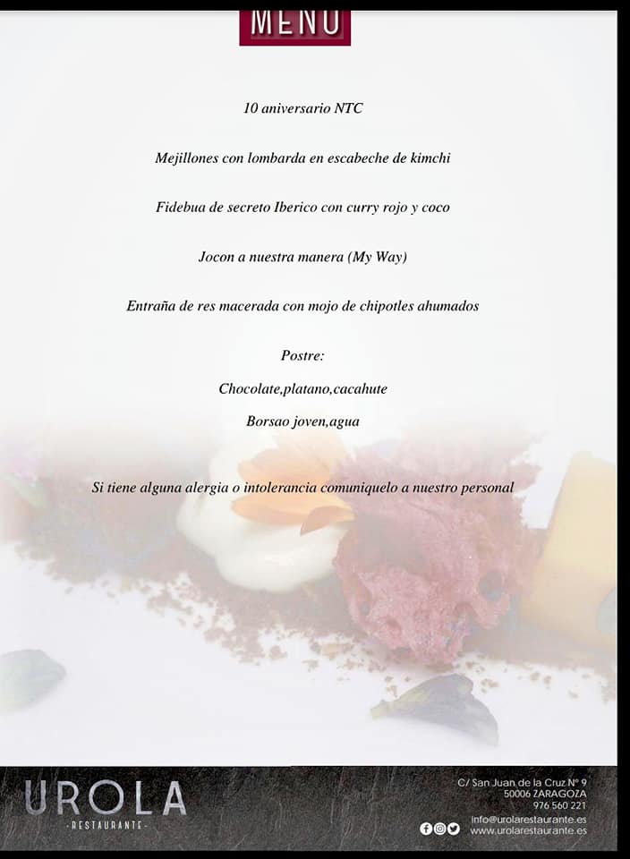 El martes 20, NTC comienza la primera cena experiencia a las 21 horas, en el restaurante Urola ‒San Juan de la Cruz, 9. Zaragoza. 976 560 221‒, por 29,29 euros, menú degustación a cargo de Miguel López, con Camila Pérez Ramírez preparará combinados de NTC & SONS Premium.