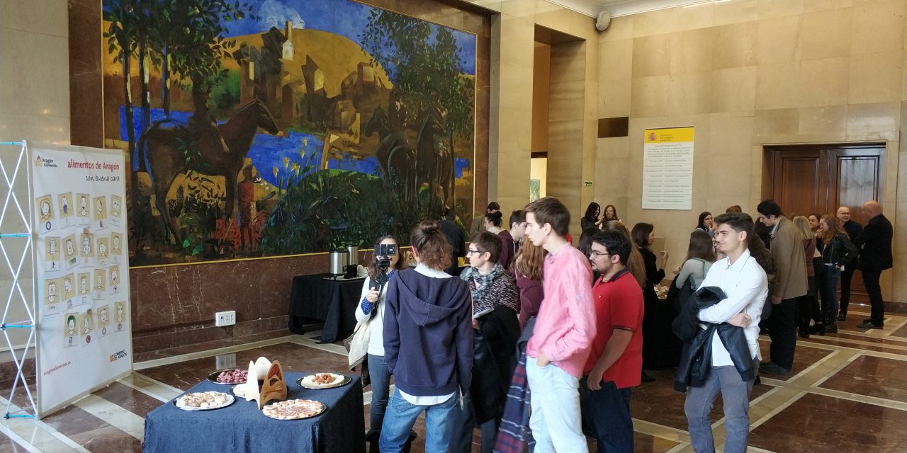 Un grupo de estudiantes de 2º de bachillerato de Ciencias Sociales de los institutos Goya y Pablo Serrano de Zaragoza disfrutaron de un desayuno elaborado con Alimentos de Aragón durante su visita a la delegación del Gobierno con motivo del 40 aniversario de la Constitución, que se conmemora precisamente hoy.