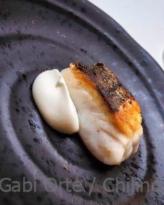 El momento culminante llega con la Secuencia de merluza y aceite de oliva, en frío y caliente. Una muy interesante Tartaleta de merluza manteccata a la veneciana con oliva negra del bajo Aragón y la inolvidable ya –para el firmante y el fotógrafo– Merluza y emulsión de su proteína, perfecta en sabor, sencillez y ejecución; menos es más.