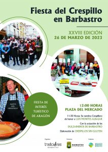 Barbastro acogerá este domingo la XXVIII Fiesta del Crespillo, declarada Fiesta de Interés Turístico Regional en 2015. Un año más, la Plaza del Mercado volverá a ser el epicentro de esta fiesta que organizan el Ayuntamiento de Barbastro y la Asociación Cultural Tradiciones de Barbastro, en una jornada en la que Luis Montes Albajar será nombrado ‘Crespillero de honor’.