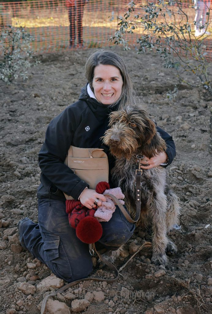 Leticia Sopena enseña la trufa que ha marcado su perra Boira. Foto: Gabi Orte Chilindrón.