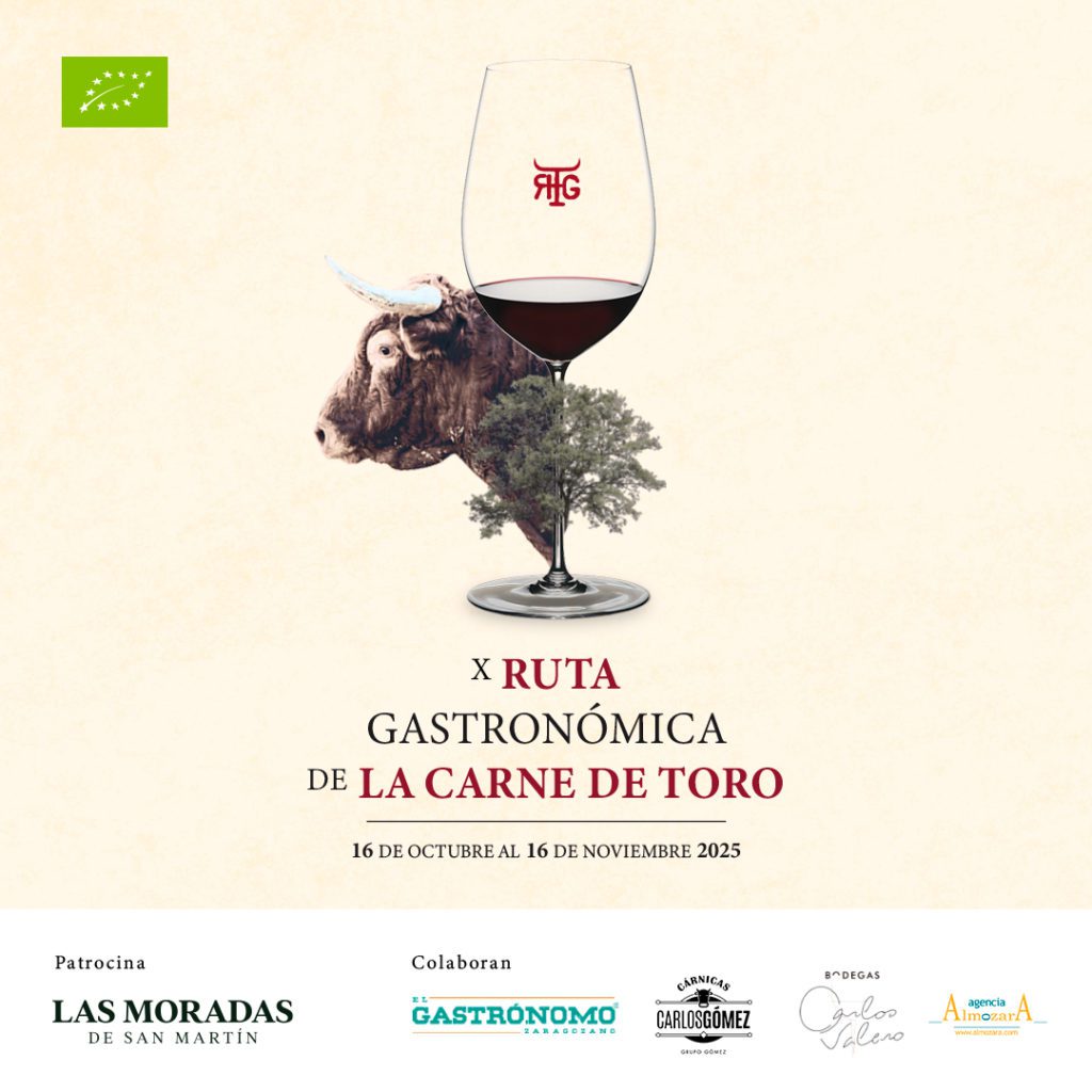 Organizada por Agencia Almozara y con Las Moradas de San Martín como patrocinadora única, la Ruta Gastronómica de la Carne de Toro cuenta con la colaboración de Cárnicas Carlos Gómez, Bodegas Carlos Valero y El Gastrónomo Zaragozano.