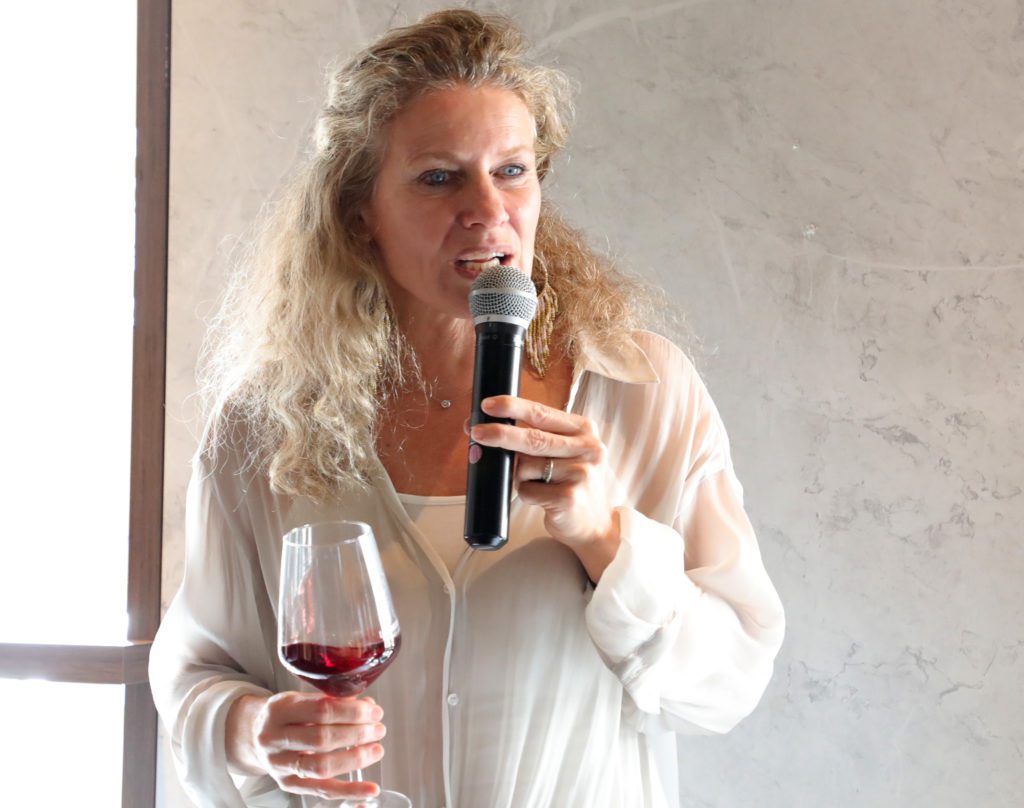 Isabel Galindo describió y explicó cinco vinos de Las Moradas de San Martín. Foto: Cristina Martínez Almozara.