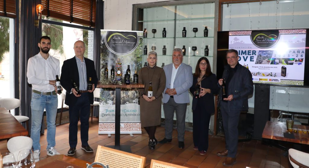 Hoy se ha celebrado en El Ambigú del restaurante El Foro la tradicional presentación de los aceites de oliva vírgenes extra de nueva cosecha de la DOP Aceite Sierra del Moncayo. Para darlos a conocer, el CRDOP ha contado con las cuatro almazaras adscritas —Cooperativa Nuestra Señora del Pilar de Novallas, Cooperativa Agrícola de Borja, Aceites Ambel de Bulbuente y Cooperativa Santo Cristo de Magallón; con el AOVE Caius y el de la Cooperativa de San Atilano de Tarazona y con la colaboración del chef Pedro Martín, que ha preparado para la ocasión cuatro tapas y un postre.