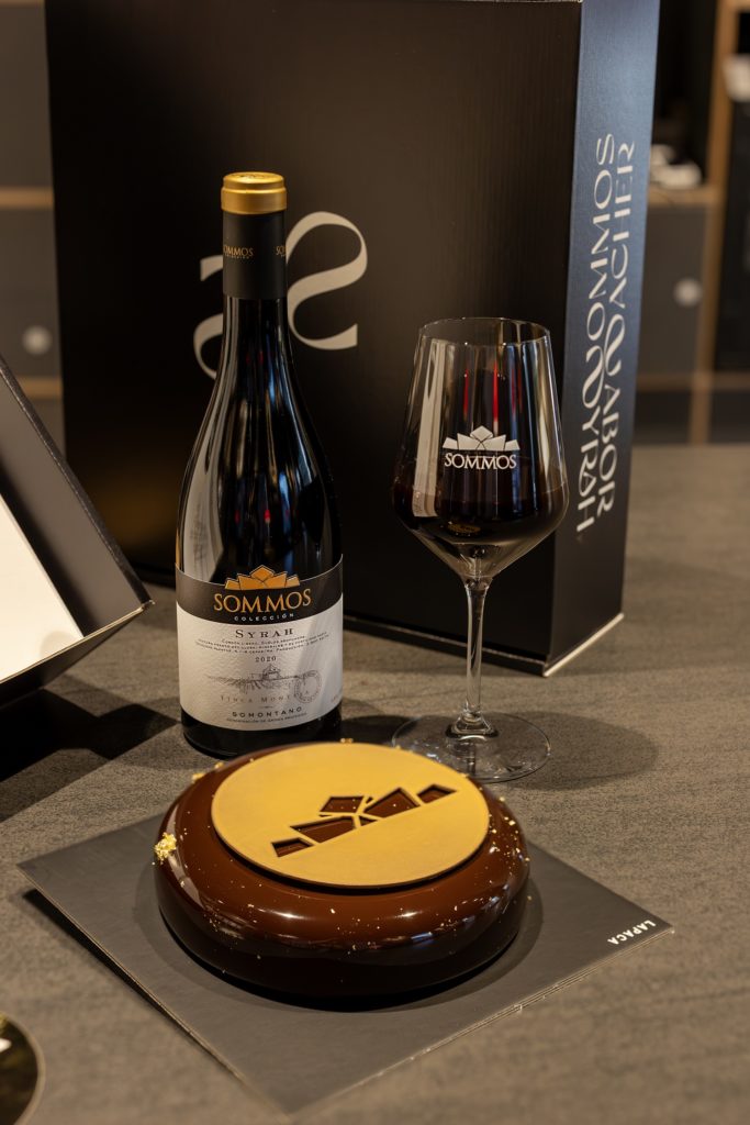 La receta incorpora vino SOMMOS Colección Syrah como ingrediente principal, para lo cual se ha optado por un syrah intenso y elegante, con aroma a frutos rojos, frutas del bosque y especias, y un gusto afrutado y sabroso en boca. “Parece una combinación poco común, pero el vino tinto y el chocolate se fusionan a la perfección en este postre que, estamos seguros, sorprenderá gratamente. Es una propuesta arriesgada y atrevida, que da protagonismo a este vino D.O.P. Somontano elaborado en nuestra bodega, integrándolo de una manera magistral en las diferentes texturas de la tarta sacher”, explica Diego Mur, director de marketing de Sommos.