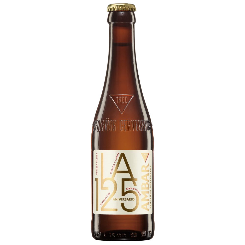 La 125 de Cervezas Ambar celebra, precisamente, su 125 aniversario. Se trata de una pils, de 4,8 º de alcohol, inspirada en las recetas juveniles de su primer maestro cervecero alemán, Charles Schlaffer. Una lager elaborada exclusivamente con malta pálida que mantiene un ligero color dorado y utiliza lúpulo alemán recién molido justo antes de añadirlo al proceso de elaboración. Equilibrada, refrescante, con fina burbuja, se recomienda beber bien fría y combina perfectamente con salchichas variadas o un codillo asado.