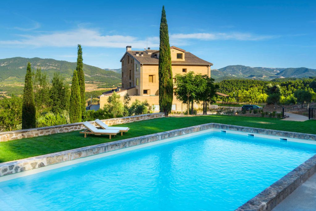 Vista general de la Torre del Marqués Hotel Spa & Winery, torre del siglo XVIII muy bien restaurada, entre Monroyo, Ráfales y Fuentespalda.