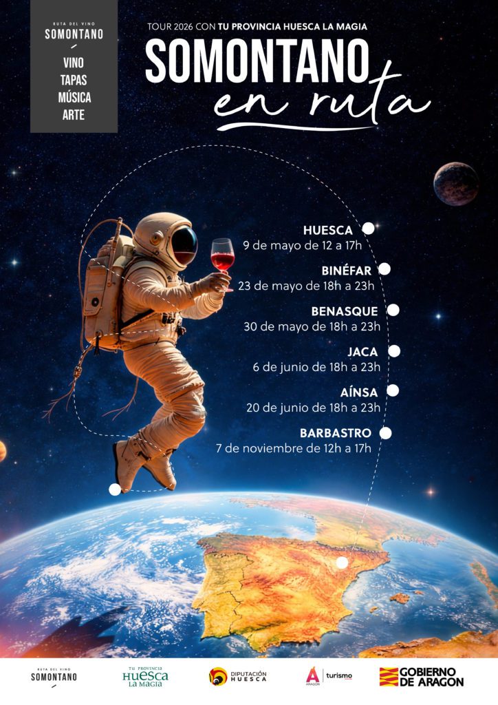 El Tour 2026 de Somontano en Ruta arrancará el 9 de mayo en Huesca, en la Plaza López Allué. Continuará el 23 de mayo en la Plaza España de Binéfar y el 30 de mayo en la Plaza del Ayuntamiento de Benasque.