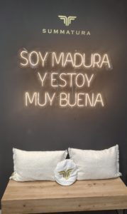 Allí pudimos leer el mejor eslogan de la feria «Soy madura y estoy muy buena», que logró un alto numero de selfies; entre ellos los de Mariano Millán y el editor de esto, Urtasun.