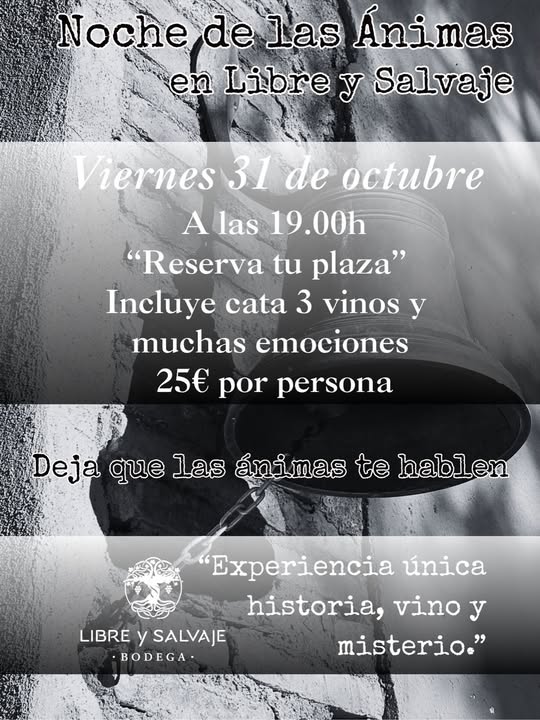 Bodegas Libre y Salvaje –Camino del Bosque, 2. Almonacid de la Sierra– propone una cata para la noche de ánimas. El viernes, 31 de octubre, a las 19 horas. Por 25 euros