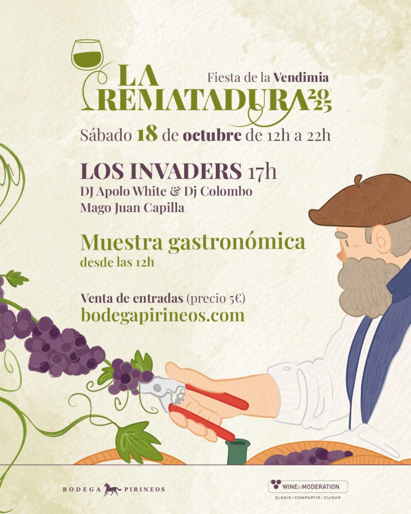 Bodega Pirineos propone la fiesta de la Rematadura, que tendrá lugar el sábado, 18 de octubre, en la propia bodega, con un aforo restringido a 250 personas.