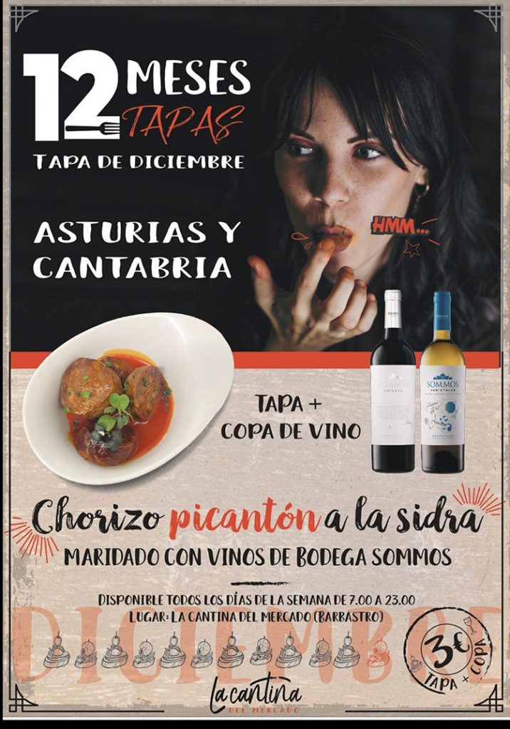 «En la Cantina del Mercado celebramos cada mes un sabor de España con nuestro ciclo 12 meses, 12 tapas. Cada edición presenta una tapa regional inspirada en una comunidad autónoma, maridada con una copa de vino del Somontano.»