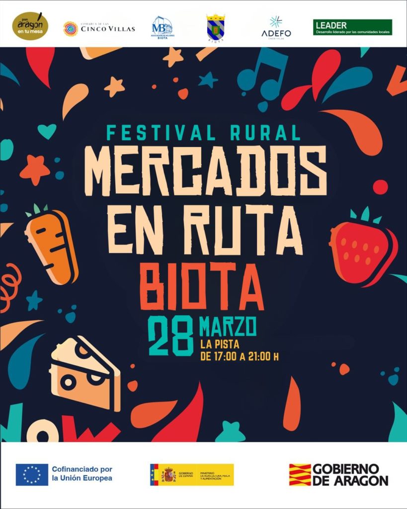 La primera edición de Mercados en Ruta 2026 tendrá lugar el sábado 28 de marzo en Biota, organizada por Adefo Cinco Villas en colaboración con el Ayuntamiento de Biota, Comarca Cinco Villas y la Asociación de Mujeres de Biota