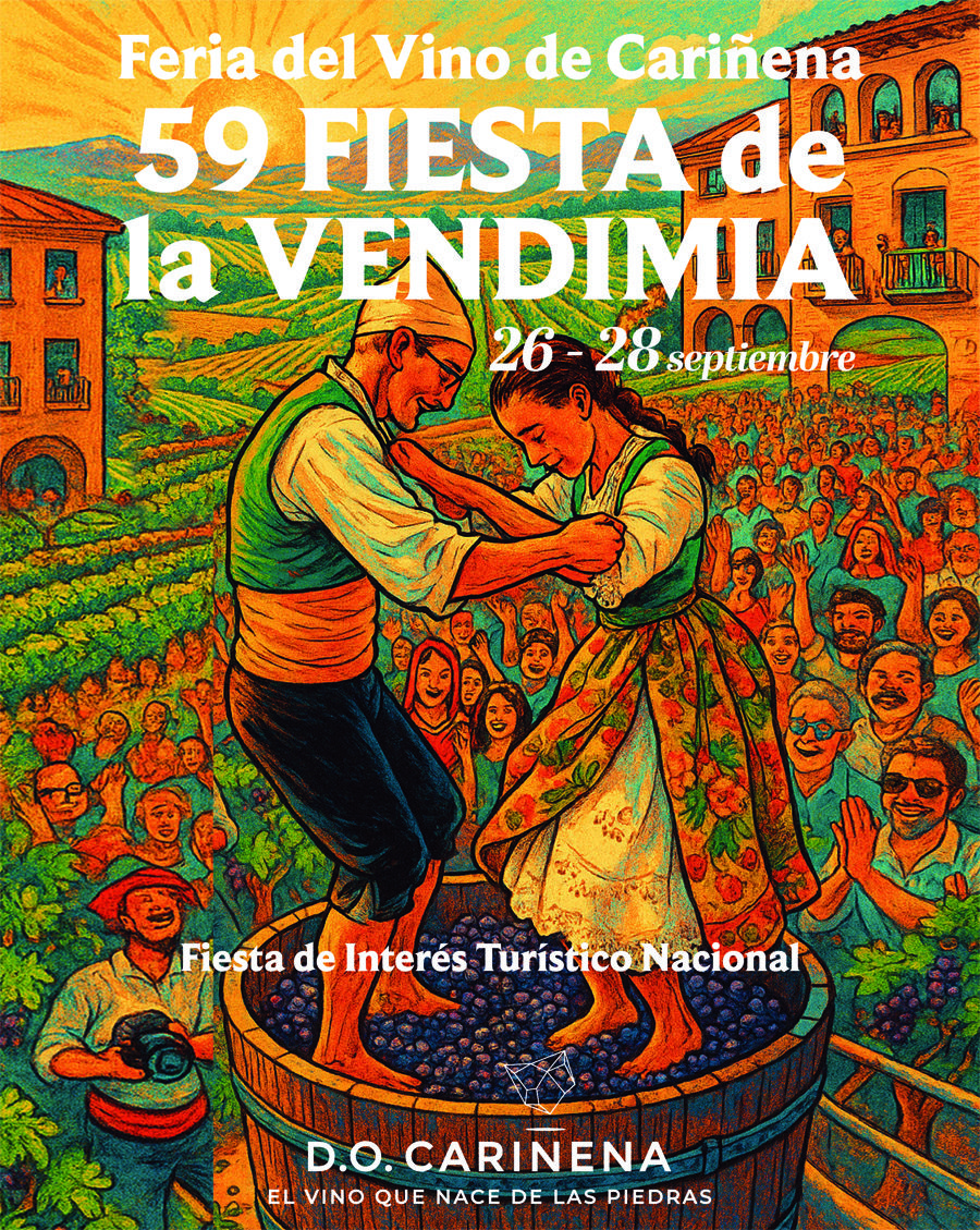 La 59ª Fiesta de la Vendimia de la DOP Cariñena, en su primera edición como Fiesta de Interés Turístico Nacional, coincidiendo con la celebración de Cariñena como Ciudad Europea del Vino 2025, se amplía de dos a tres días.
