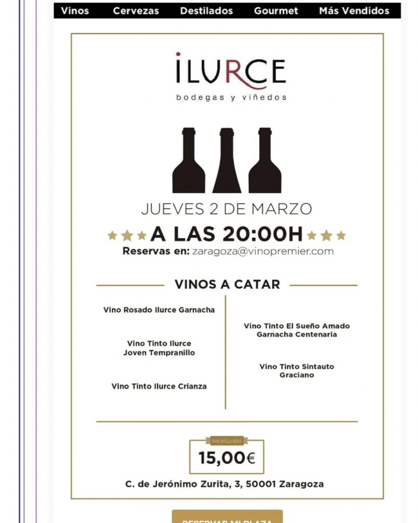 Vinopremier Zaragoza –Calle Jerónimo Zurita, 3. Zaragoza. 876 434 293– organiza una cata de vinos de Bodegas y Viñedos Ilurce.