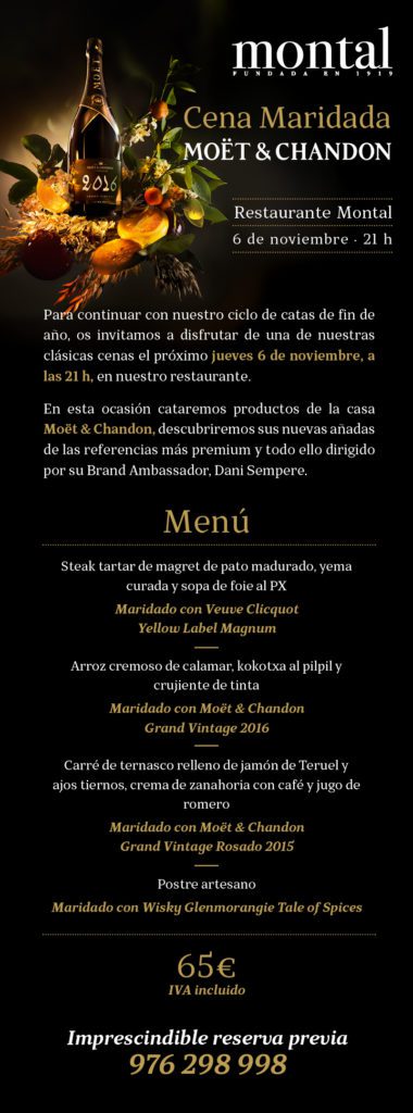 Montal –Torre Nueva, 29. 50003 Zaragoza. 976 298 998– propone una cena maridada con Moët&Chandon. Por 65 euros.