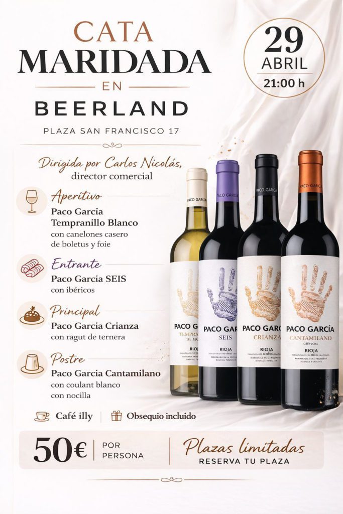 Beerland –Pl. San Francisco, 17. 976 560 603– ofrece una Cena cata maridada con los vinos Paco García. Dirigida por su director comercial, Carlos Nicolás.