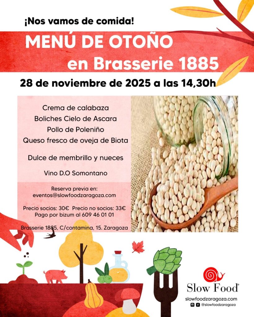 Slow Food propone un menú de otoño, en la Brasseire 1885 –Contamina, 15. 50003 Zaragoza. 76 953 171–.