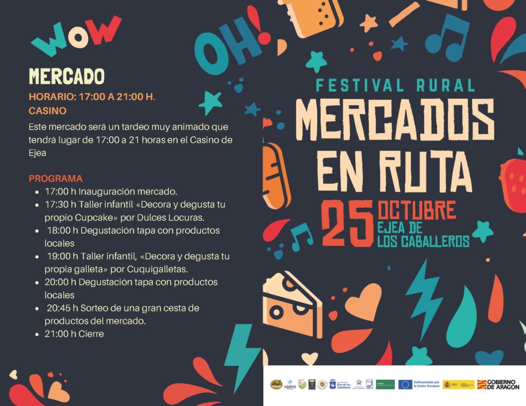 La séptima edición de Mercados en Ruta tendrá lugar el sábado 25 de octubre en Ejea de los Caballeros , organizada por Adefo Cinco Villas en colaboración con Civitur, Comarca de Cinco Villas, Ejea Hostelera, Ejea Comercio, la Despensa de Cinco Villas y Ayuntamiento de Ejea de los Caballeros.
