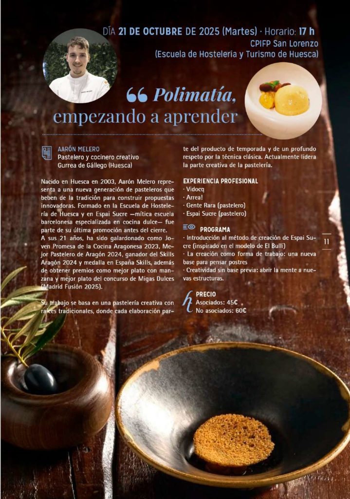 En el CPIFP San Lorenzo (Escuela de Hosteleria y Turismo de Huesca. Precio asociados 45 €, No asociados 60 €.