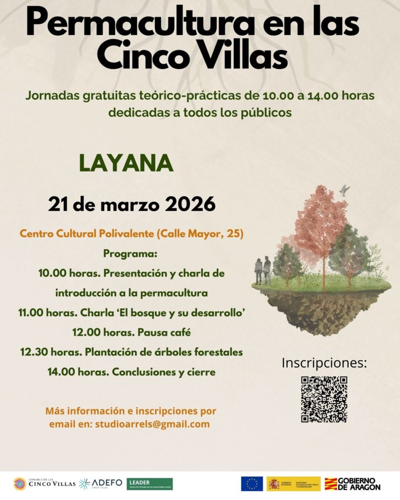 La Comarca de Cinco Villas, a través de un proyecto de cooperación con Adefo Cinco Villas, organiza la primera edición de las jornadas de permacultura, que se desarrollarán en cinco municipios cincovilleses, empezando por Layana (21 de marzo) y El Frago (22 de marzo).