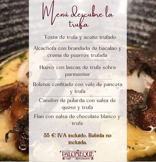 PALOMEQUE menú y tapa DESCUBRE LA TRUFA