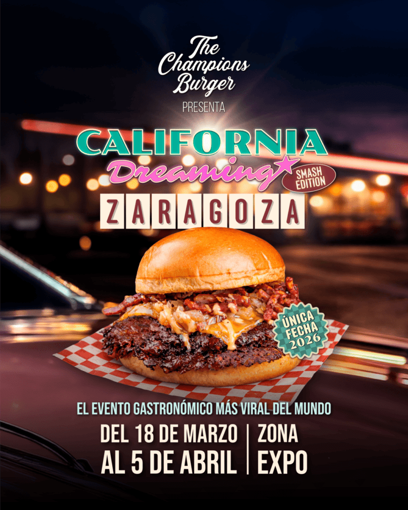 Hasta el domingo, 5 de abril, en la Zona Expo del parque Fluvial, Zaragoza acoge The Champion Burger, donde 19 gastronetas presentan a concurso hamburguesas de diferentes partes de España, buscando la Mejor smash burger de España.
